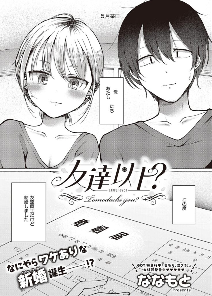 友達以上? ななもと 友情結婚から始まる大人のラブ&エロス!契約を破った夜、二人の関係はどこへ向かうのか?