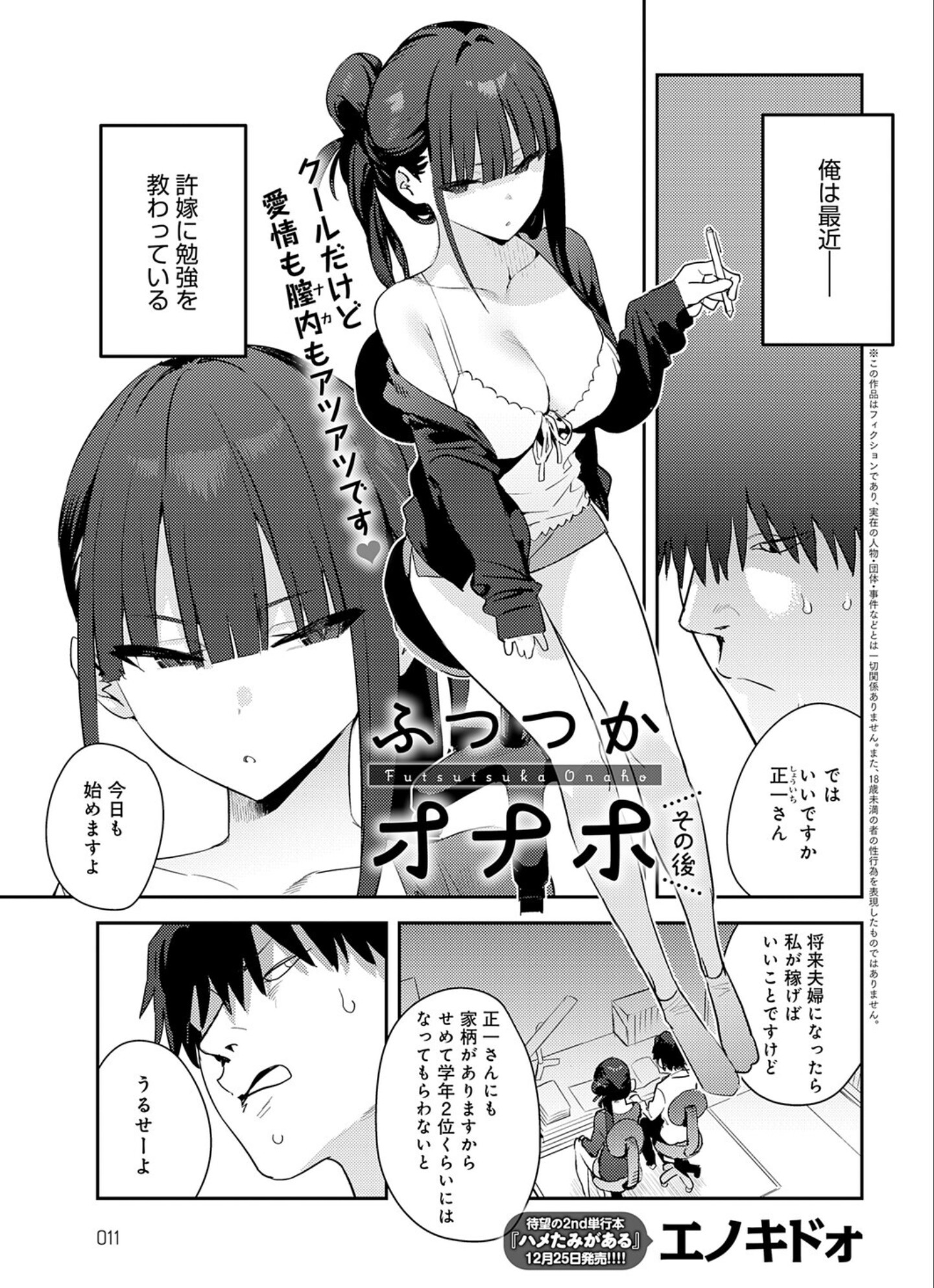 FANZAブックス(DMMブックス)にて予約独占先行完結配信が予定されている、超人気作家・エノキドォ先生が贈る背徳シリーズ最新作、『ふつつかオナホ その後』。本作は、前作『ふつつかオナホ』でオナホ扱いを申し出たダウナー系許嫁・柊さつきとの、屈辱と愛が入り混じる異常な関係性の続きを描いた、待望の続編エロスです。