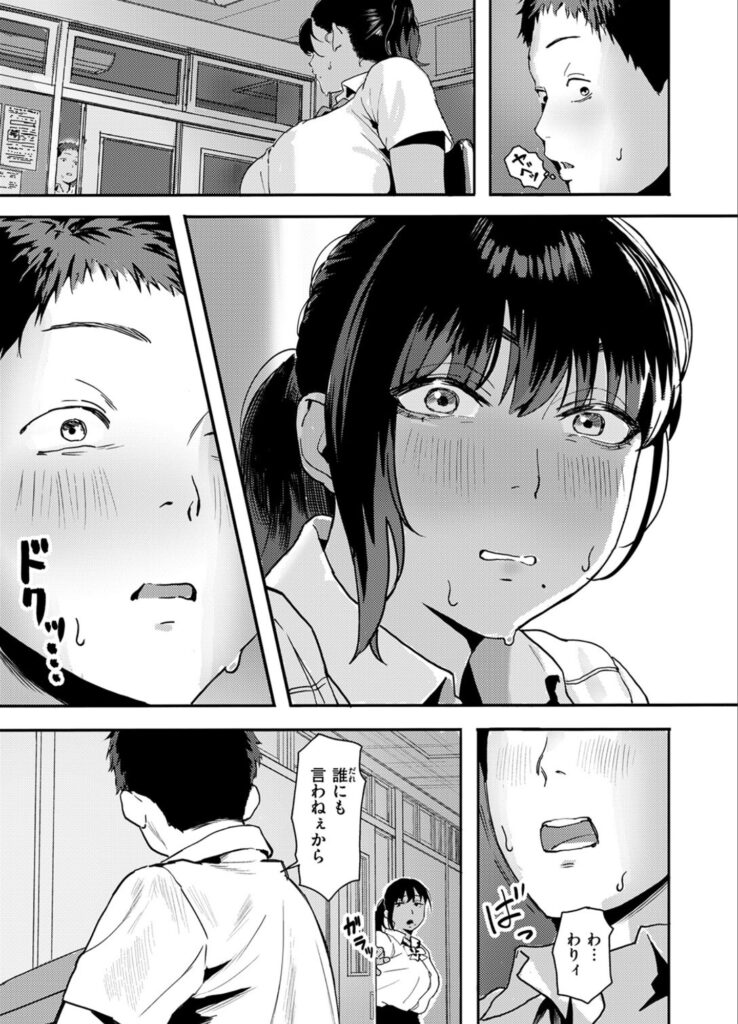 そんな優介の葛藤の最中に、物語は急展開を迎えます。彼は放課後の教室で、朱莉がオ○ニーしている姿を目撃してしまうのです。この衝撃的な目撃が、二人の関係を一変させます。その場から逃げるように自宅に戻る優介を、朱莉は追いかけるように彼の家にまでやってくるのです。