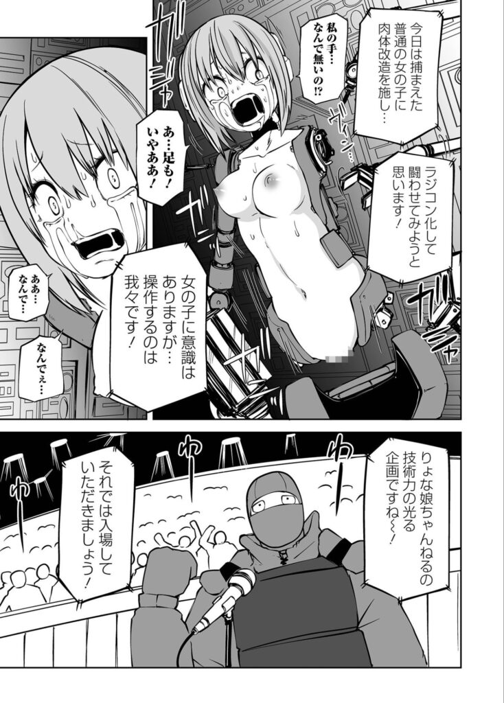 物語の導入は、現代的な恐怖から始まります。社会のルールを完全に無視した過激な動画配信で再生回数を稼ぐ三人組の男たち。彼らに拉致された二人の少女は、本人の意思を無視して勝手に戦闘ロボットへとボディを改造されてしまいます。彼女たちの意識ははっきりと残っているにもかかわらず、その四肢を動かすのは男たちの握るコントローラー。視聴者の「いいね」や再生回数のために、親友同士、あるいは見知らぬ少女同士が無残に破壊し合わされる……。その抗えない運命が、阪本KAFKA先生の卓越した筆致で描かれます。
