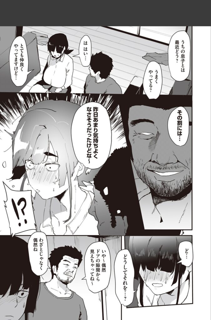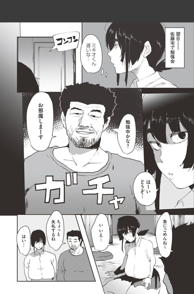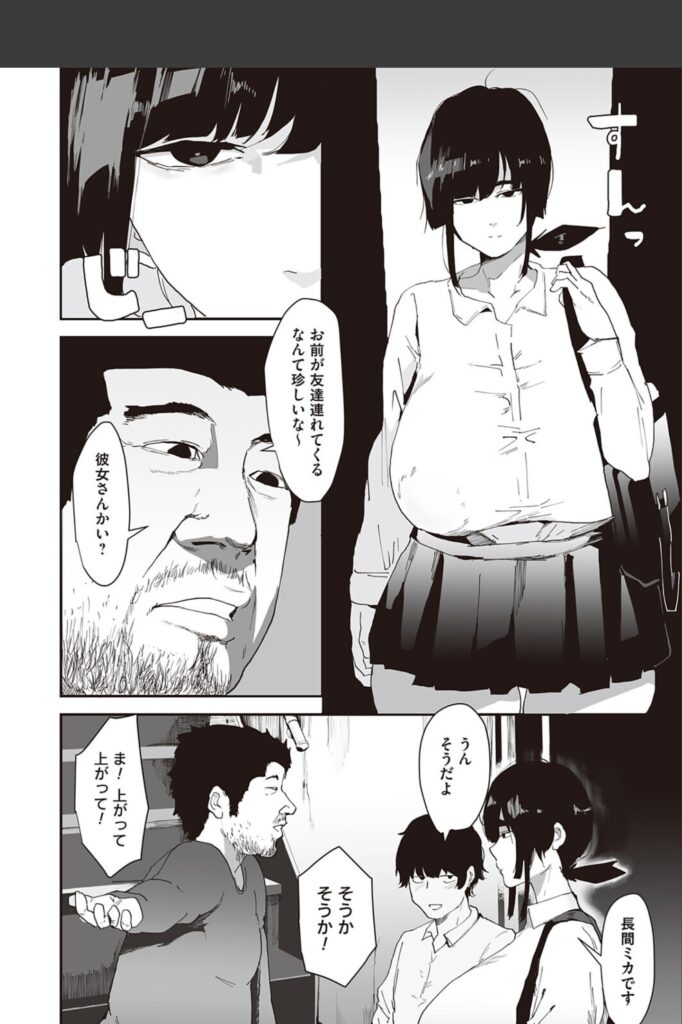 主人公のミカちゃんは、彼氏のミキオくんと将来の結婚を誓い合うほど愛し合う、ごく普通の女の子。しかし、彼女には誰にも言えない秘密がありました。それは、ミキオくんとのセックスで一度もイッたことがないということ。彼を傷つけたくない一心で演技イキを繰り返す日々。そんな彼女の嘘を見抜いたのは、ミキオくんの父親である、無精髭を蓄えたイカつい男でした。彼を待つ部屋に現れた父親は、ミカちゃんの悩みをズバリ指摘し、あろうことか「イクための練習」を提案します。彼氏の素チンとは比較にならない、顔ほどもある巨大なペニスを突きつけられたミカちゃん。拒絶すべき理性が、未知の巨根への好奇心に敗北する時、彼女の「戻れない転落」が幕を開けます。